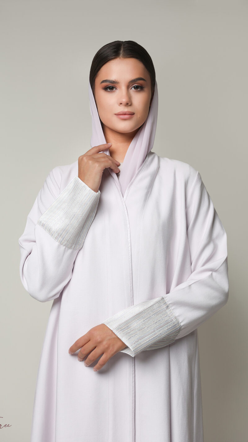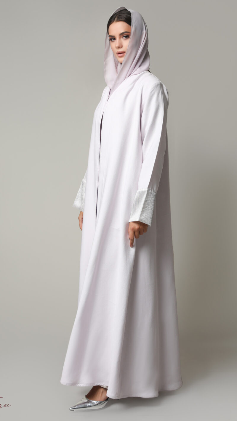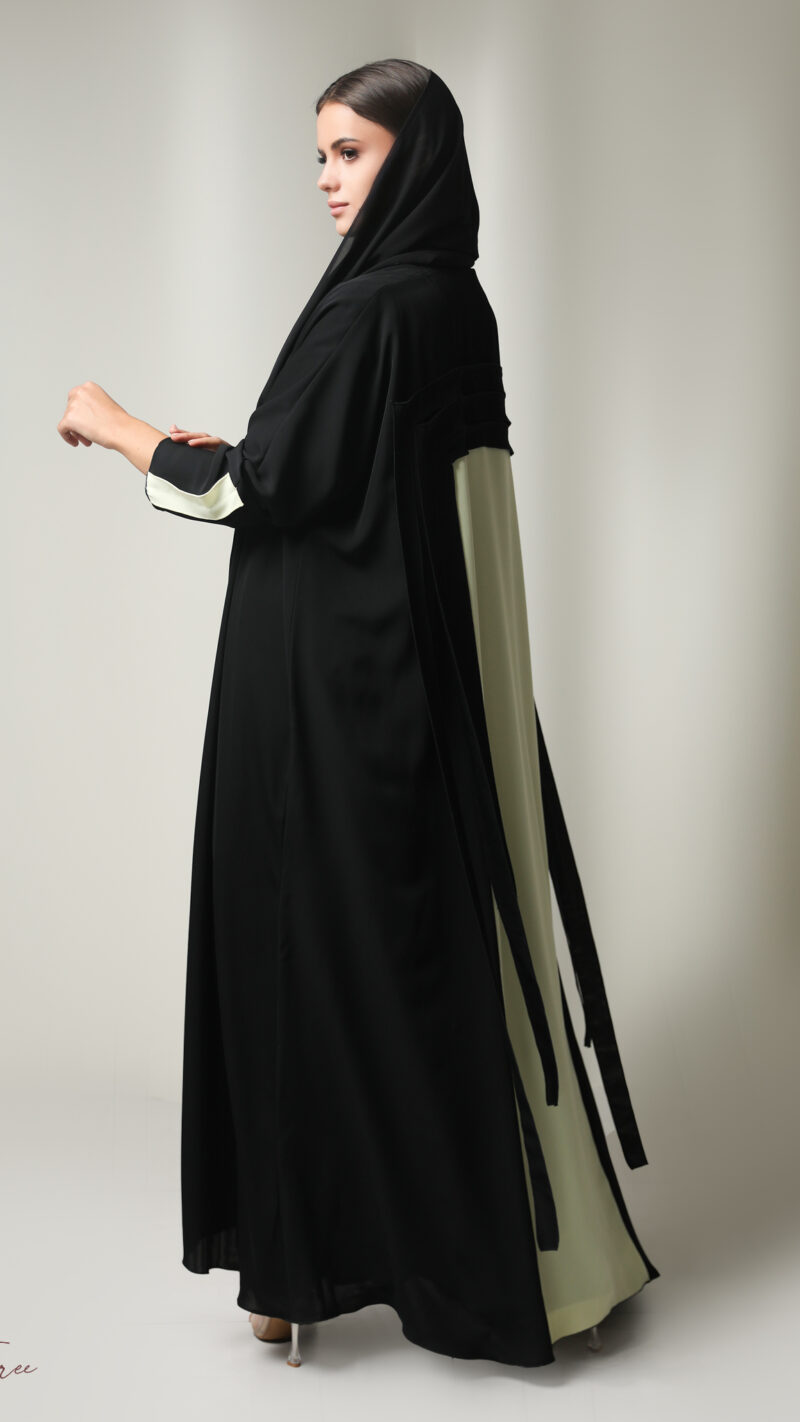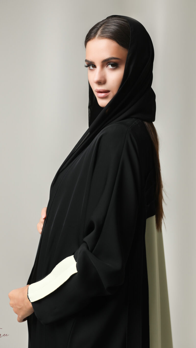 Black crepe abaya with  white and headscarf.