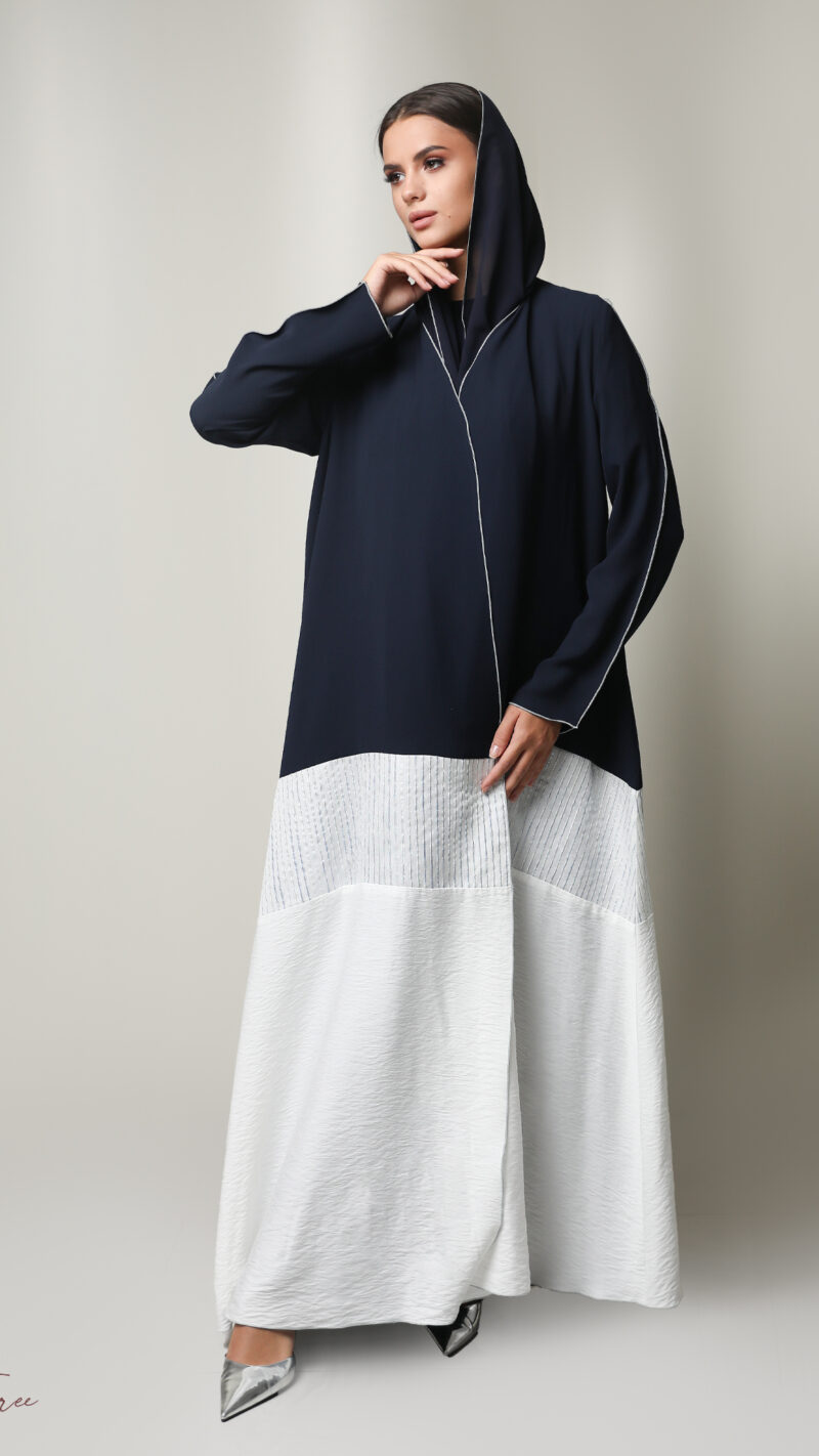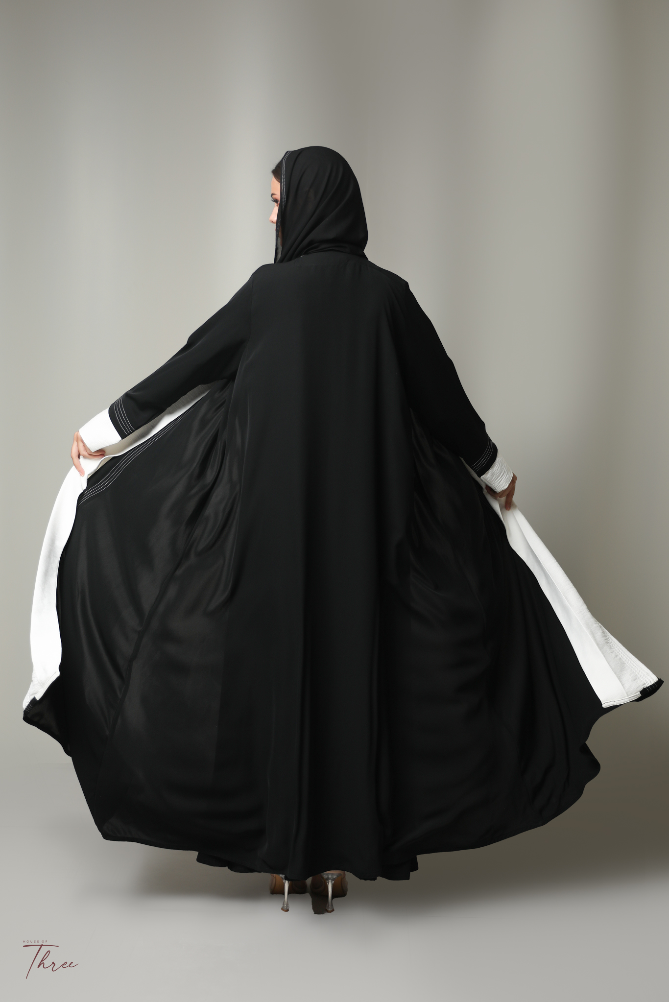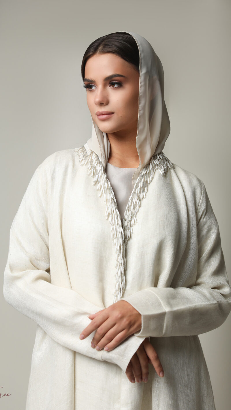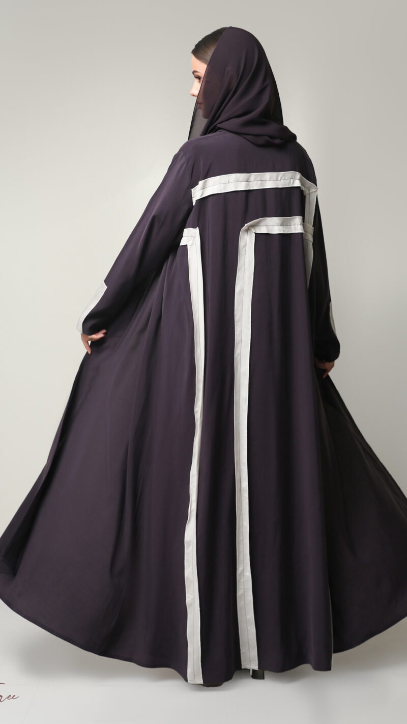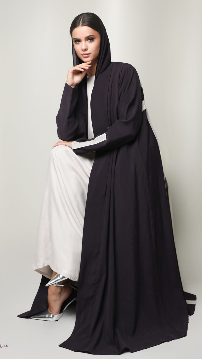 Black crepe abaya with  white and headscarf.