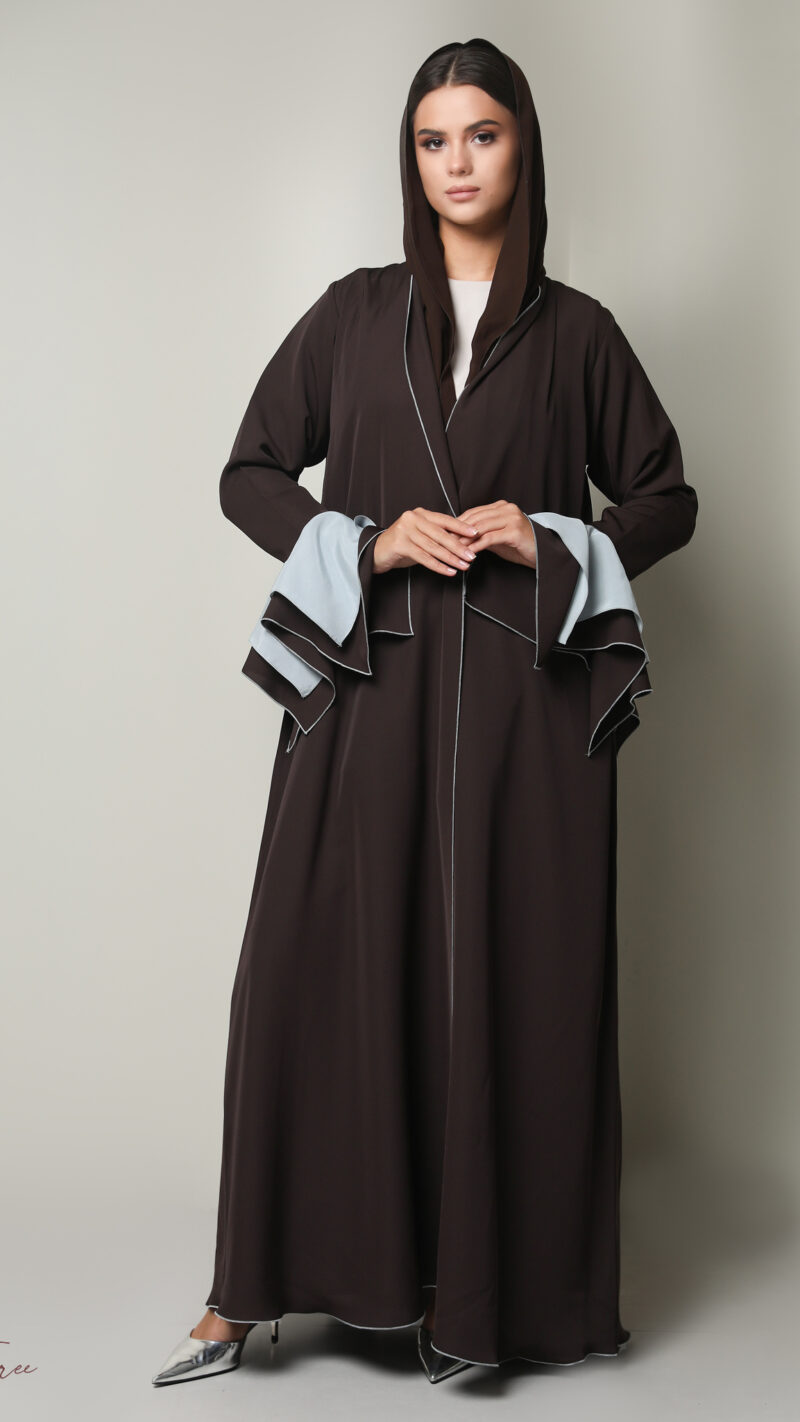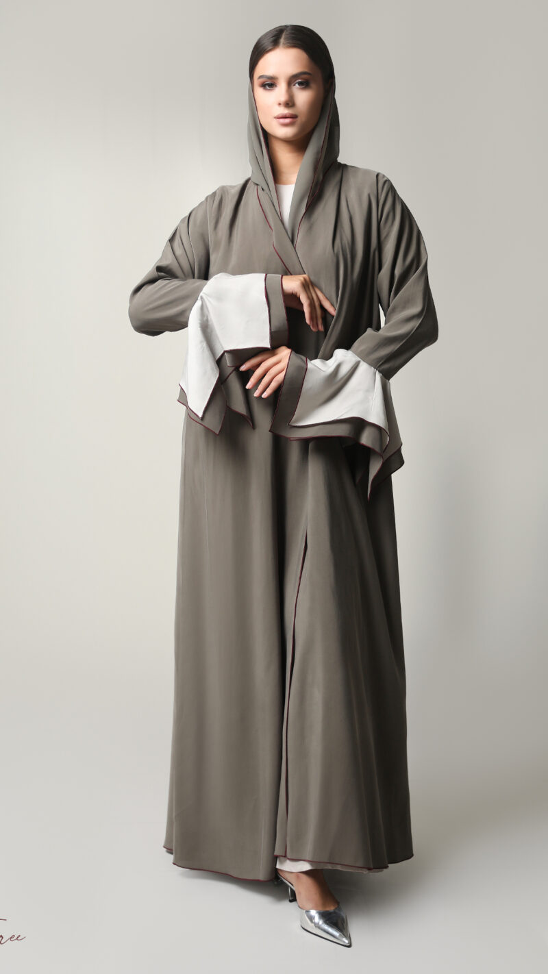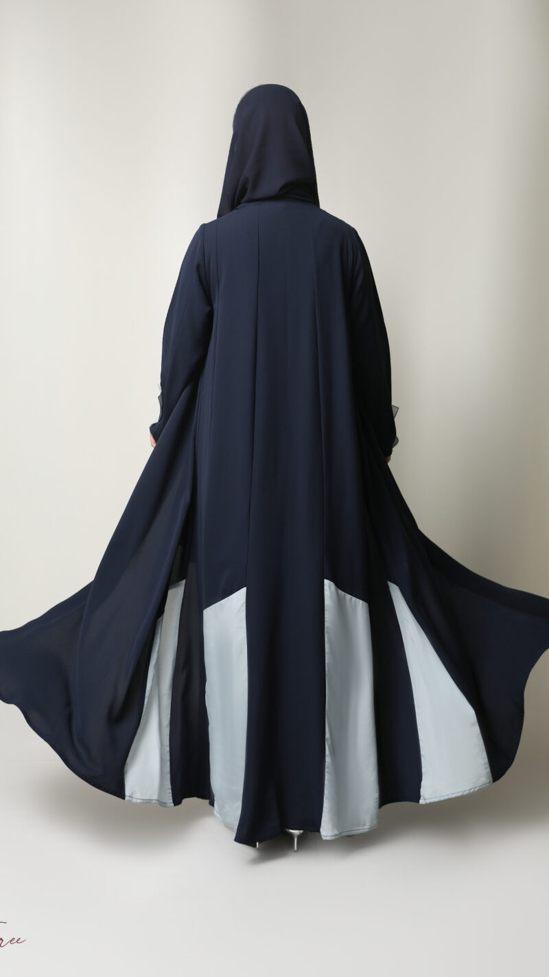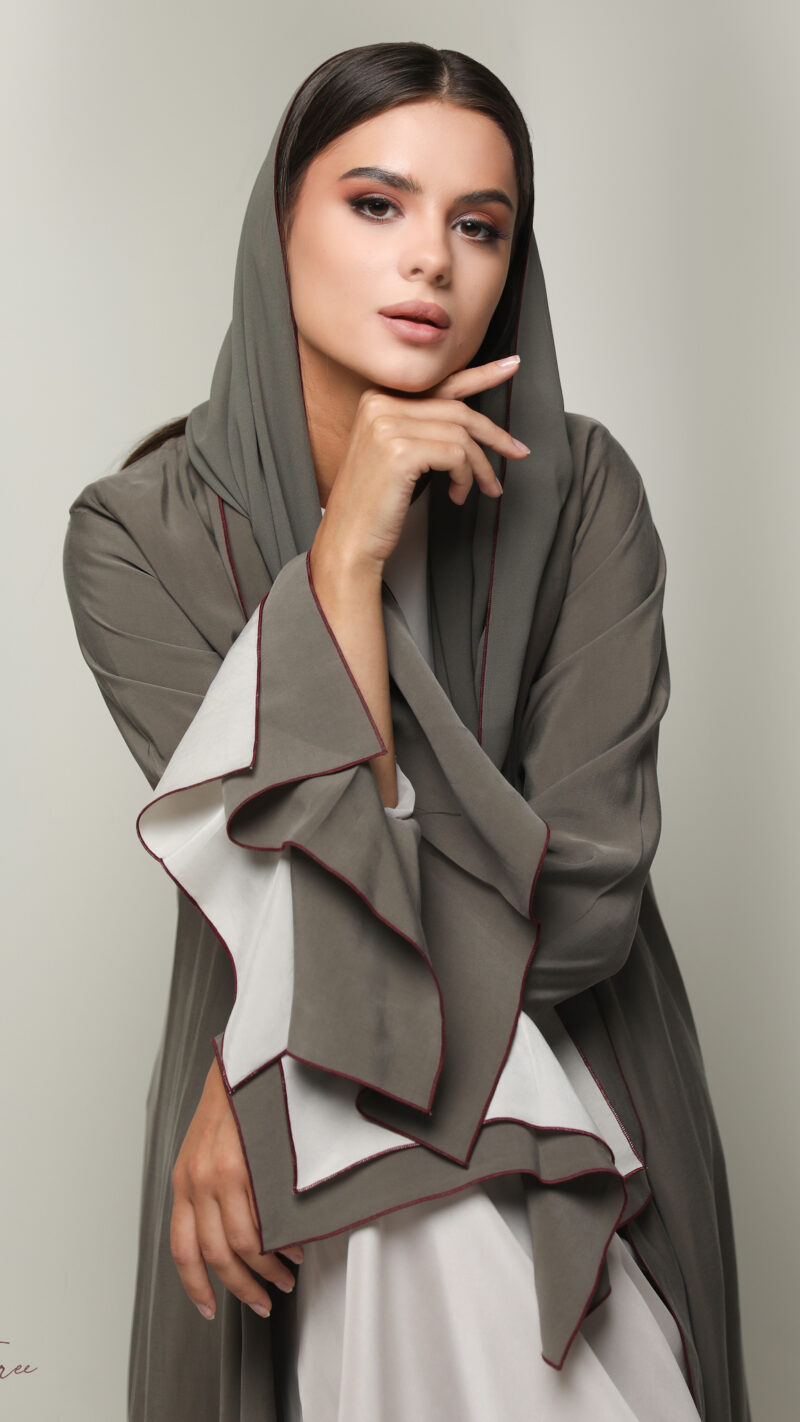 Black crepe abaya with  white and headscarf.